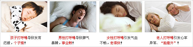 女性 女性打鼾容颜老得快。原因在于女性因长期打鼾气血不畅造成面部皮肤松弛、粗糙、多皱、口臭口苦、过早出现鱼尾纹、同时还造成眼白浑浊大眼袋以及月经不调、容易衰老,甚至提前3-15年进入更年期。女性打鼾会导致睡不解乏、白天困倦、嗜睡;睡醒后血压升高;睡眠浅、睡醒后头痛;夜间睡眠心绞痛、心律紊乱;夜间睡眠遗尿、夜尿增多;记忆力减退。