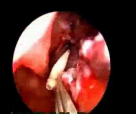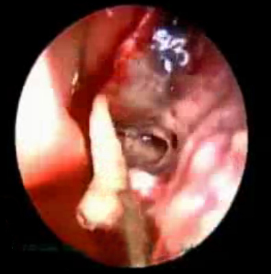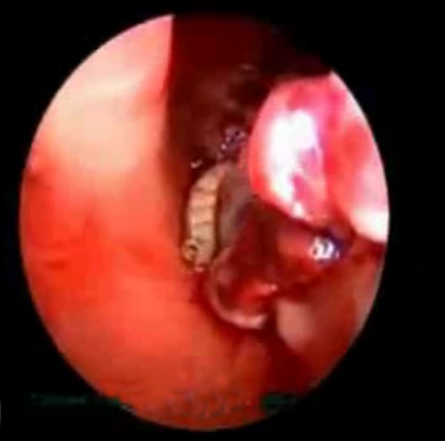 内窥镜下可见鼻腔内的白色蛆虫