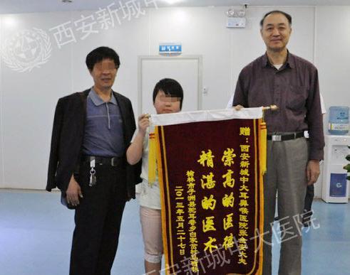经张教授亲自主刀手术(“全安”疗法)后,马艳听力下降的症状也随之消失。手术后,马艳无右耳闷胀堵塞感,无听力下降、耳闷,无耳流脓,无耳痛,头晕、头痛等不适,家里人看到马艳痊愈特别感激。5月27日,为了感激张教授,马艳随同父亲不远千里,特意从榆林老家赶来西安新城中大耳鼻喉医院,与父亲一起亲自将锦旗送到张全安教授手中,称赞张教授“精湛的医术,崇高的医德”。
