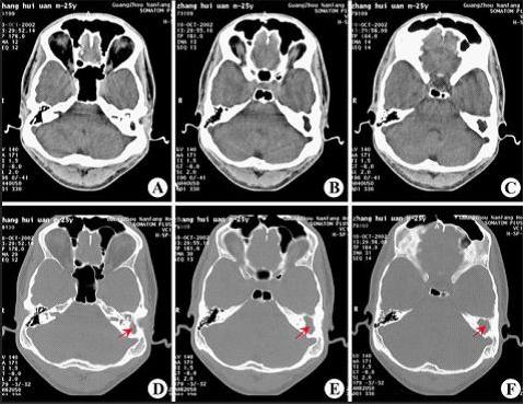 CT显示:左侧慢性中耳乳突炎(胆脂瘤型)