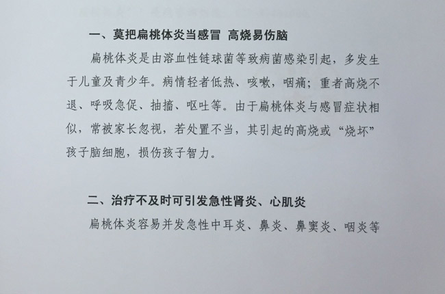 一、莫把扁桃体炎当感冒 高烧易伤脑