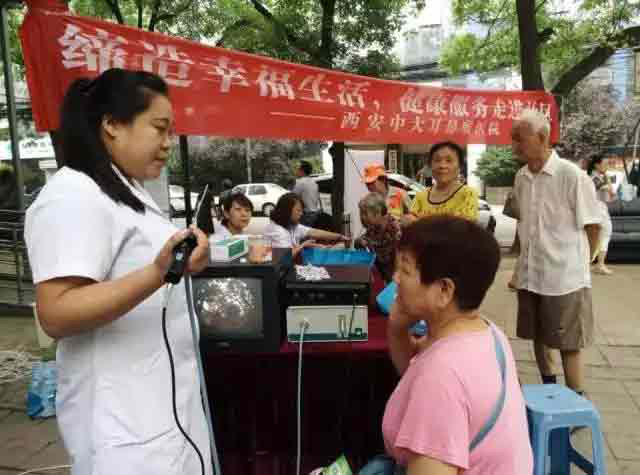 为增强群众爱护耳鼻喉疾病意识,普及耳鼻喉知识,7月16日西安新城中大耳鼻喉医院走进了西安市莲湖区药王洞社区,在这里中大将为该社区居民提供为期一天的“缔造幸福生活,健康服务进社区”义诊活动。