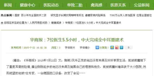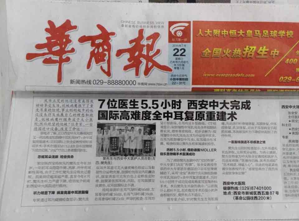 您所在的位置: 首页 > 媒体聚焦 > 华商报:7位医生5.5小时,西安中大完成 高难度全中耳复原重建术