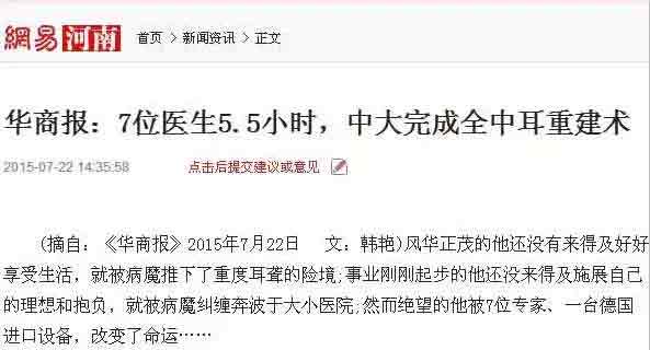 (摘自:华商报 文:韩艳)风华正茂的他还没有来得及好好享受生活,就被病魔推下了重度耳聋的险境;事业刚刚起步的他还没来得及施展自己的理想和抱负,就被病魔纠缠奔波于大小医院;然而绝望的他被7位医生、一台进口设备,改变了命运……
