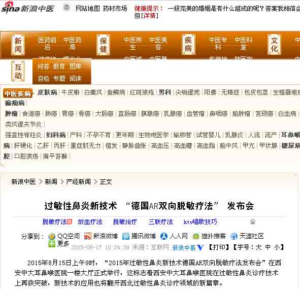【新浪】西安中大成功引进脱敏治疗