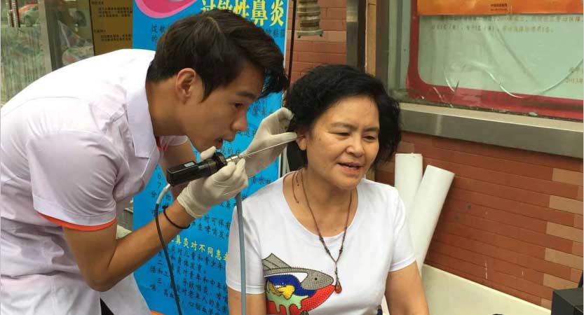免费耳鼻喉内窥镜常规检查进社区,居民献感谢