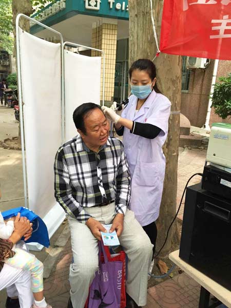 “大爷,您这耳朵里面都流脓了,经常耳朵痛?这是中耳炎的症状,已经比较严重了,建议您尽早去医院检查治疗,时间长了会影响您的正常生活。”经过初步检查确认,西安新城中大耳鼻喉医院医护人员对西安市新城区西电社区前来义诊的王大爷说道。